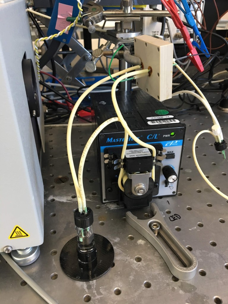 Project: Investigation of heterogeneous catalysts, solvents, and reaction conditions for the reduction of esters. Early stages of this inquiry involved a gas diffusion electrode system. Responsible for establishing a suitable membrane, synthesizing catalysts through a variety of deposition techniques, and troubleshooting complications within the cell and its coupled GC-MS for detecting gaseous ethers. Modelled MEA cell components in SolidWorks and machined/ordered parts currently in use by JCAP. Project transitioned to a non-aqueous cell system which required testing of numerous solvents and electrolytes for resistance to decomposition at high potentials and UV exposure. Collaborated with Matt Kuchta to test gas products of cell under various catalysts and potentials. Ultimate mission of project is to produce ethers or other useful industrial compounds using CO2 as a feedstock.